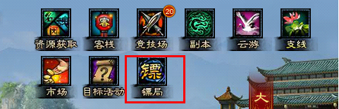 从每天活动开启时间内点击游戏上方的“镖局”进入;
