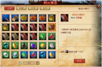 进入积分商店后,您可使用幸运卡牌在积分商店内兑换《乾坤大挪移》等珍贵秘籍以及玄铁、侠魂、宝石等众多超值礼品。
