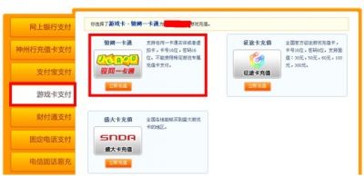 玩家在左侧充值方式导航中选择“游戏卡”即可进入“骏网一卡通”充值界面