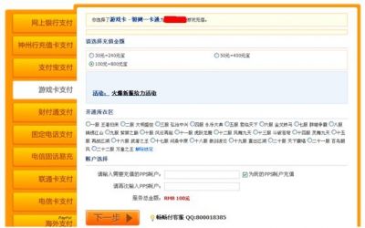选择所拥有的骏网一卡通的对应面值、所在的服务器,并填写账号后,点击“下一步”