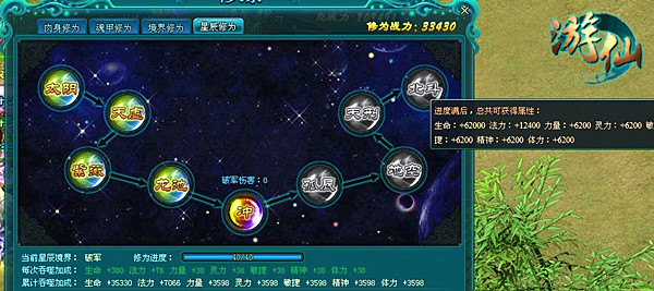 星辰修为是4种修为中增加属性最多的,可以大副提升自己的战力。星辰修为的提升可以用星魂来击破各种星辰的守护星来提升,(本人建议RMB玩家首先选择提升星辰修为来增加自己的战力)。星辰进阶到下个等级的时候可以通过各种碎灵来提升星辰所增加的属性(碎灵可以通过野外的固定怪物获得),等级高时所增加的属性是非常多的!