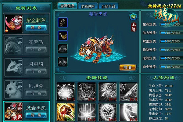 坐骑同样相当美观又可以增加自身战力,是大侠们的必选。坐骑和宠物一样可以通过进阶和升品、学习各种技能、佩带装备来增加自身的战力。