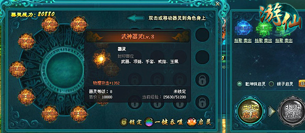 器灵也分为多种等级。可以直接增加人物自身的攻击、防御和生命,也可以通过吞噬低品阶的器灵来提升器灵的等级。