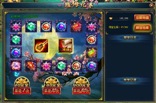 活动期间,玩家只要在线一定时间就能获得1次抽奖机会,每天有8次抽奖机会,第二天清零。