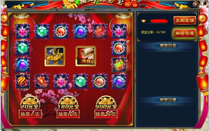 活动介绍: 限量购买超值礼包,橙色秘籍、六级宝石、九恨凰血,全服仅限20个。
