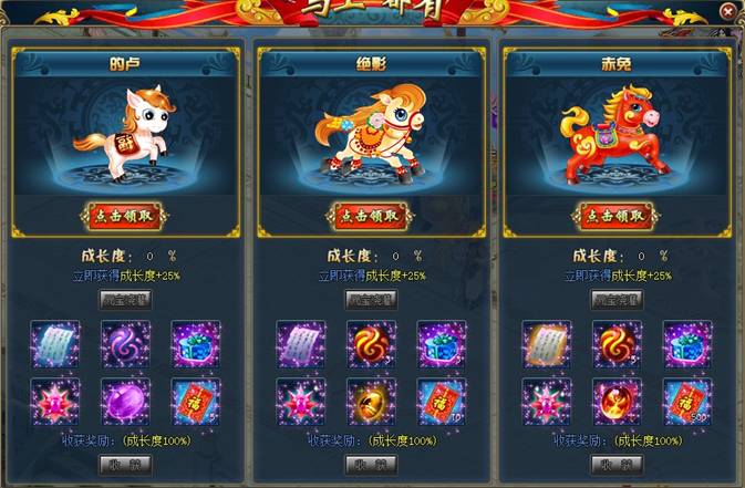 活动介绍:活动期间玩家能选择一个又萌又可爱的马上宝宝进行培养,每天登陆成长值提升25%,成长值到达就能领取对应的超值奖励!