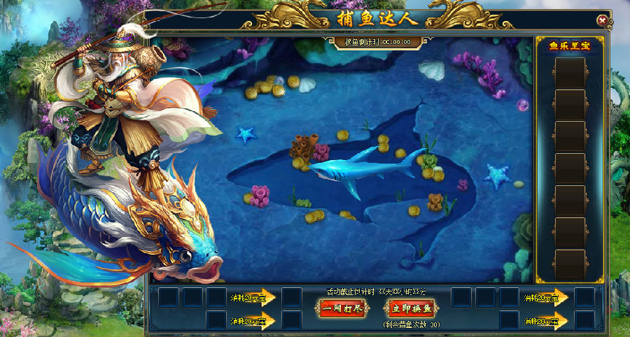 活动内容:活动期间,玩家通过花费元宝或者仙币,就能在捕鱼达人内捕获相关的鱼获得稀有材料,打开材料可以随机获得超级奖品哦。