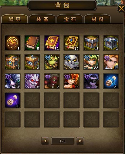 背包主要储存装备、宝石、道具等。除装备外,其他物品均可叠加显示。